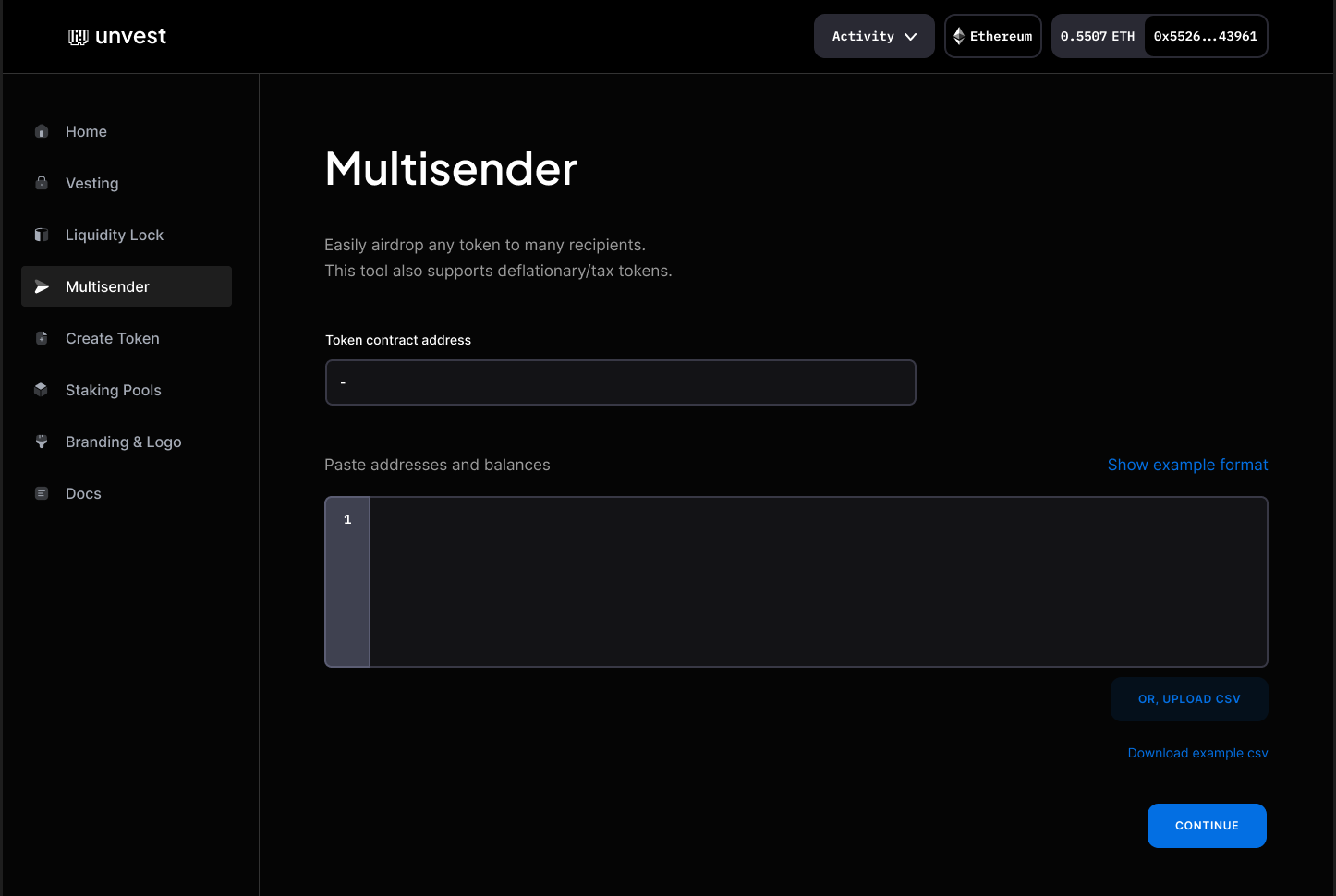 - Upload a CSV file with the recipient information. You can download a template to help you format the file correctly.