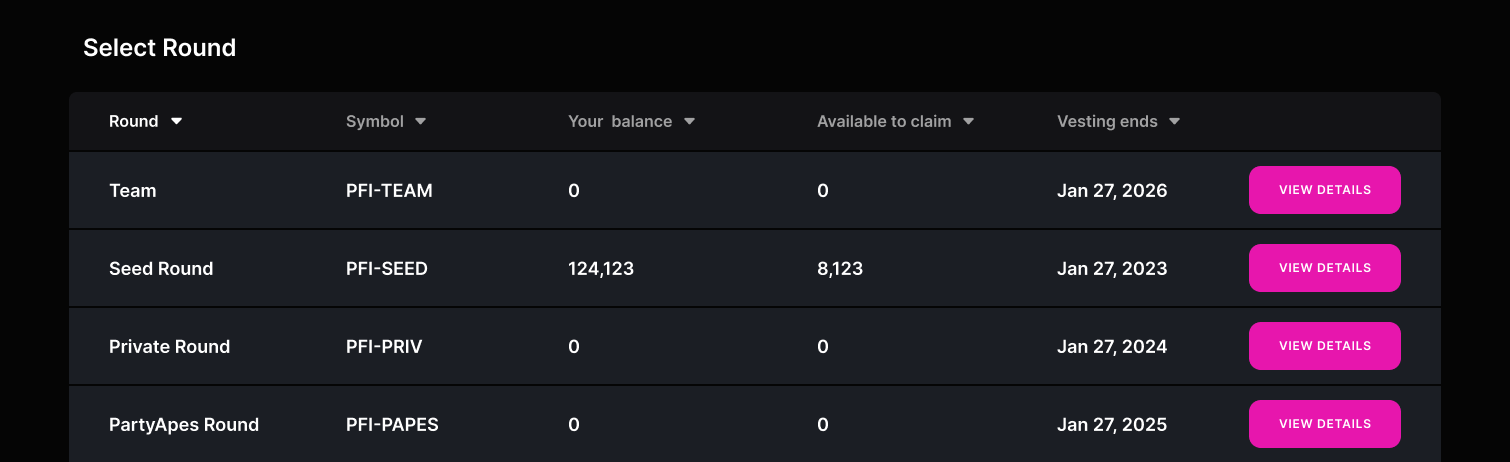 Select the vesting round that you want to claim tokens from.