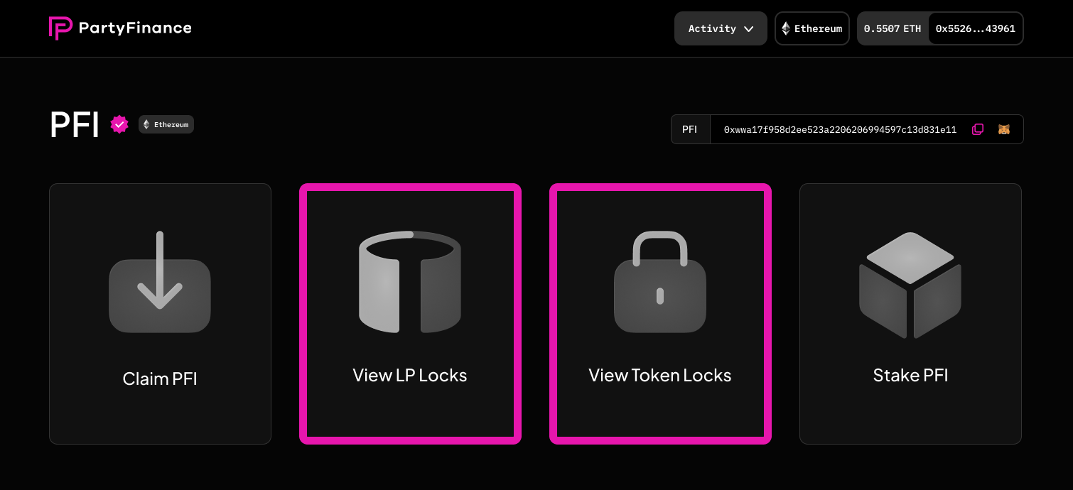 - On the Investor Dashboard, you will see two panels: “View token locks” and “View LP locks”.