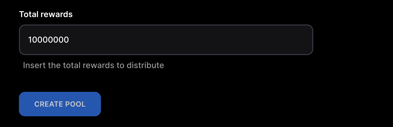 - In the “Total Rewards” field, enter the total number of reward tokens that will be distributed to stakers. In this case, we will enter “10000000”.
